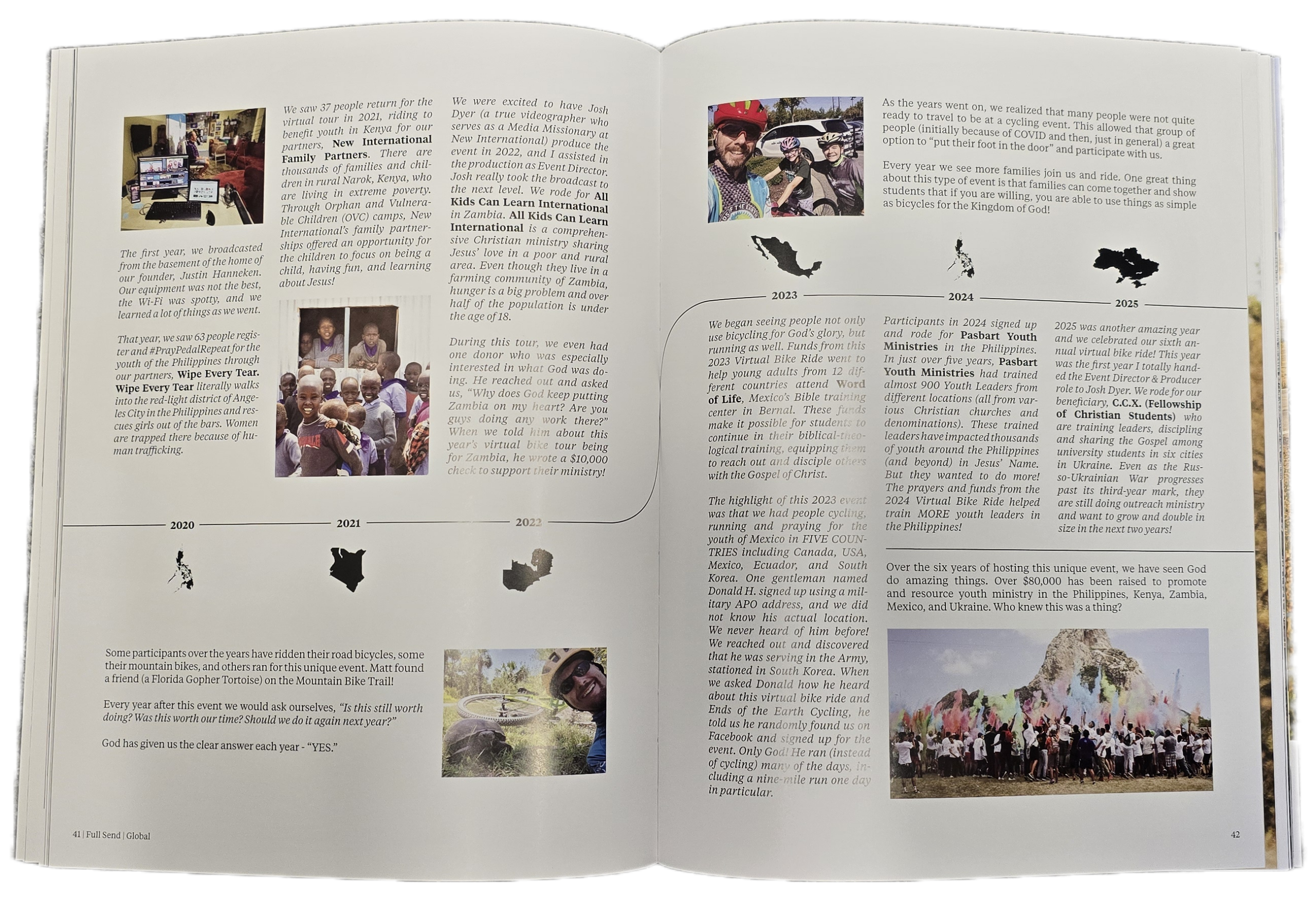 Full Send Volume 2 is a publication of Ends Adventures. It is a 104 page, full-color magazine, full of testimonies of what God has done through you!  Jeff Metzger (CEO of New International) said it best, “We have the best stories in the world, and I love Ends of the Earth Cycling because it tells it so creatively.”  Get your copy of this limited print publication today and read stories from around the world of what God did through your prayers and participation.