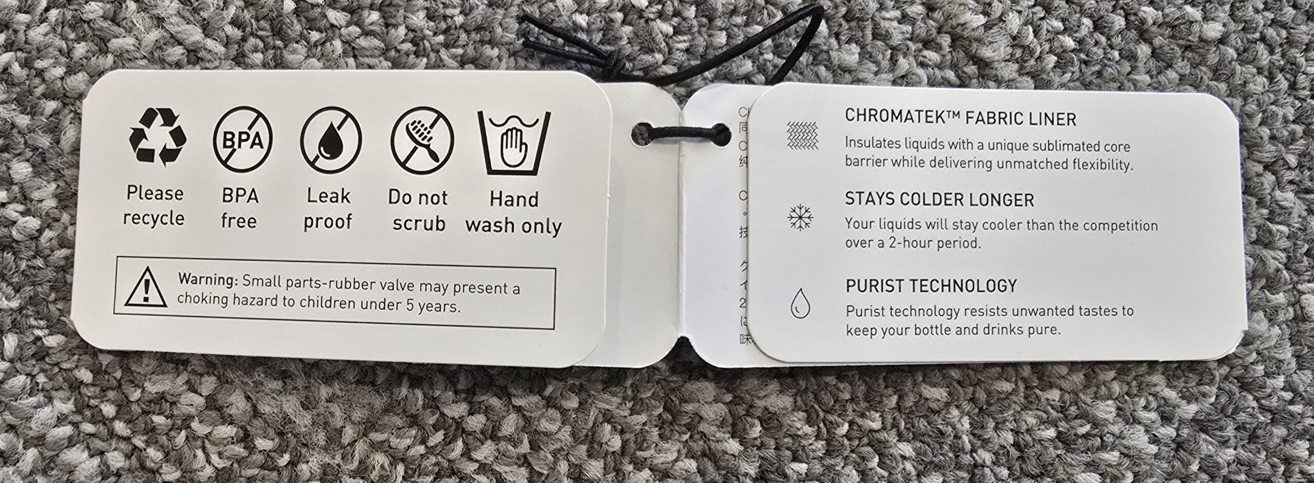 Our custom, 23 ounce size, Ends Cycling Chromatek bottles have an insulated barrier that lines the core to keep your liquids cold in the heat and from freezing in the cold. This bottle is lined with Purist technology, keeping your beverage from ever touching plastic.
